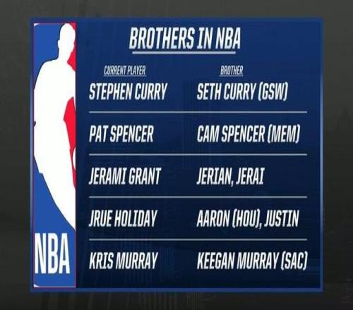 北京时间今日,NBA转播方盘点了部分现役的NBA兄弟球员,斯蒂芬/赛斯-库里兄弟领衔,霍勒迪三兄弟在列。