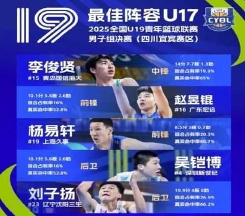 最近全国U19的比赛火热进行中,这次比赛有很多跨年龄的球员参加,因此主办方搞了一个U17的最佳阵容。其中辽宁青年队的后卫刘子扬入选,他跨级打U19,场均数据为19.9分8助攻。这是非常好的表现了,也引起很多辽宁球迷关注。